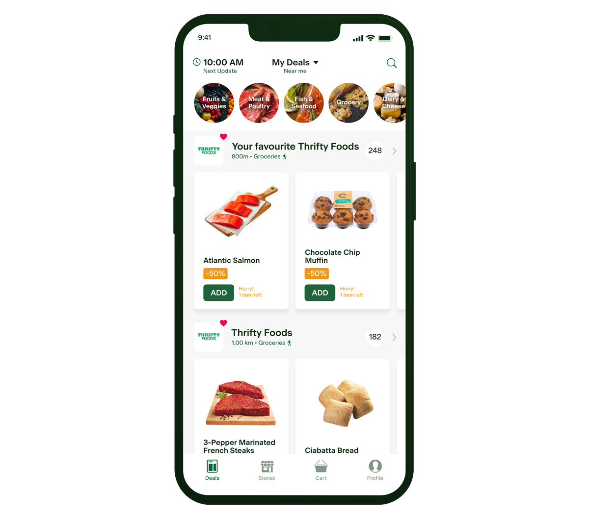 Download the app today to pick up your saved foods at participating Thrifty Foods stores.